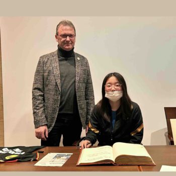 Ehrung durch Bürgermeister Thomas Helbling für U15 Weltmeisterin Koharu Itagaki im Rahmen einer Feierstunde mit Eintrag ins Goldene Buch der Stadt Bad Königshofen Bild: Jürgen Halbig