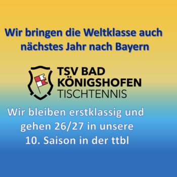 Der TSV Bad Königshofen ist ein 1861 gegründeter Sportverein aus Bad Königshofen im Grabfeld, dessen Tischtennisabteilung seit der Saison 2017/18 in der Bundesliga spielt. Nach der Saison 2011/12 stieg die Herrenmannschaft aus der Oberliga Bayern in die Regionalliga Süd auf, aus der wiederum der direkte Aufstieg in die 2. Bundesliga Süd gelang. 2017 erreichte man die Meisterschaft und nahm das Aufstiegsrecht wahr. Der erste Sieg in der obersten Spielklasse gelang am 5. Spieltag gegen den TTC Zugbrücke Grenzau. Mit der jüngsten Mannschaft der TTBL belegte man am Ende der ersten Saison den neunten Platz und kam dabei auf einen Zuschauerschnitt, der nur von Borussia Düsseldorf übertroffen wurde.