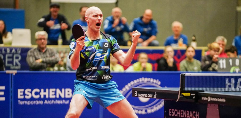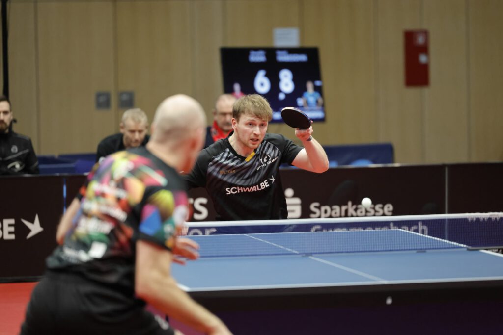 Beitragsbild Sven Kubeile vom Vorrundenspiel: Daniel Habesohn (im Vordergrund) legte mit seinem 3:1 Erfolg über Bergneustadts Topspieler Bene Duda (im Hintergrund) den Grundstein für den späteren 3:0 Erfolg Es geht…