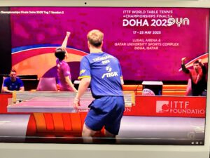 Für Filip Zeljko ist die Weltmeisterschaft in Doha leider bereits beendet. In der ersten Runde unterlag er dem deutschen Nationalspieler Dang Qiu äußerst unglücklich mit 3:4 Sätzen. Wie eng das Duell tatsächlich war, zeigt ein Blick auf die Ballstatistik: Nach sieben Sätzen stand es insgesamt 60:60.