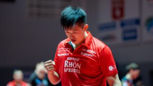 Damit stand es 2:0 für Maberzell zur Pause. Doch selbst danach hätte es nochmals eine Wende geben können, denn Filip Zeljko hatte lange Zeit das Spiel gegen Fan Bo Meng im Griff. Doch auch ihm gelang es nicht die knappen Sätze auf seine Seite zu ziehen. Im Entscheidungssatz führte Filip sogar mit 10:8 und vergab insgesamt drei Matchbälle. Fan Bo machte es besser und verwertete gleich den ersten zum 13:11 und insgesamt zum 3:0 Erfolg für Fulda-Maberzell in der Endabrechung.