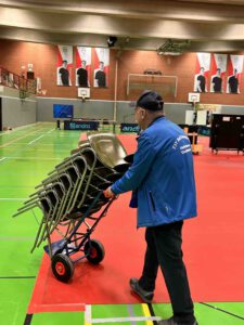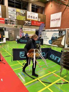 - Nach dem letzten Ballwechsel muss alles wieder abgebaut werden, damit am nächsten Tag der Schulsport stattfinden kann.