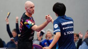 Im Entscheidungssatz zeigte Togami dann jedoch, warum er zu den Besten der Welt zählt. Über ein 5:3 beim Seitenwechsel -auch mit Hilfe eines „tödlichen“ Netzrollers- zog der Japaner auf 11:5 davon und machte damit den 3:1-Gesamtsieg perfekt.