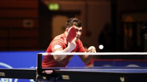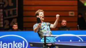 Gerade die Partie zwischen Jha und Steger bot Tischtennis auf höchstem Niveau. Nach einem deutlich verlorenen ersten Satz gegen den auf Weltranglistenplatz 28 geführten US-Amerikaner schien Steger im zweiten Durchgang beim Stand von 6:3 auf dem besten Weg zum Satzausgleich – musste diesen jedoch noch abgeben und geriet mit 0:2 in Rückstand. Im dritten Satz sah dann beim Zwischenstand von 1:5 vieles nach einer Vorentscheidung aus, ehe „Basti“ eindrucksvoll zurückkam: Mit sieben Punkten in Serie drehte er den Satz zu einer 8:5-Führung und sicherte sich diesen schließlich mit 11:6. Im vierten Durchgang lag der TSV-Routinier bereits mit 9:7 in Front, musste sich am Ende jedoch unglücklich mit 10:12 geschlagen geben – und damit auch im Gesamtspiel.